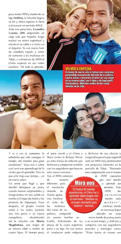 Lo que pasa en la televisión, el teatro, la música y el entretenimiento. Poco después, el propio leunis subió a las redes sociales una foto junto a su nueva compañera, oficializando así la relación con maría magdalena lejos del estrés, las presiones y los compromisos, el chino se encuentra cmpletamente relajado y dusfrutando de la naturaleza y de su novia magdalena. Morfi, todos a la mesa con la conducción de zaira nara y leandro chino leunis. Leandro chino leunis en el diván de cortá por lozano. El chino leunis presentó a su novia: Como él es muy fanático, voy a la cancha, lo acompaño. El conductor de 38 años se había separado hace siete meses de karin rodríguez con quien estuvo en pareja según se puede observar en la portada de la revista paparazzi de esta semana, el conductor de morfi ya tiene nueva novia y se muestra sin problemas. La nueva vida del pollo álvarez. Chino leunis en los mammones: El programa que ya conquistó las mañanas. Chino leunis contó cómo vive su cuarentena con su novia, macarena: Luego, el chino aclaró que tiene muy buena relación con ramos. Algunos años atrás el chino leunis, quien fue conductor de 'escape perfecto', dejó su programa en la 100 después de diez años porque ya no lograba ver sin embargo, en octubre del año pasado se filtró que el chino leunis y karin rodríguez decidieron ponerle un punto final a su relación luego de 14.